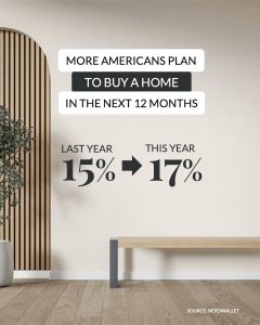 New data from NerdWallet shows more Americans are starting to think about buying a home again. Last year, 15% of respondents said they planned to buy a home in the next 12 months. This year, that number rose to 17%.